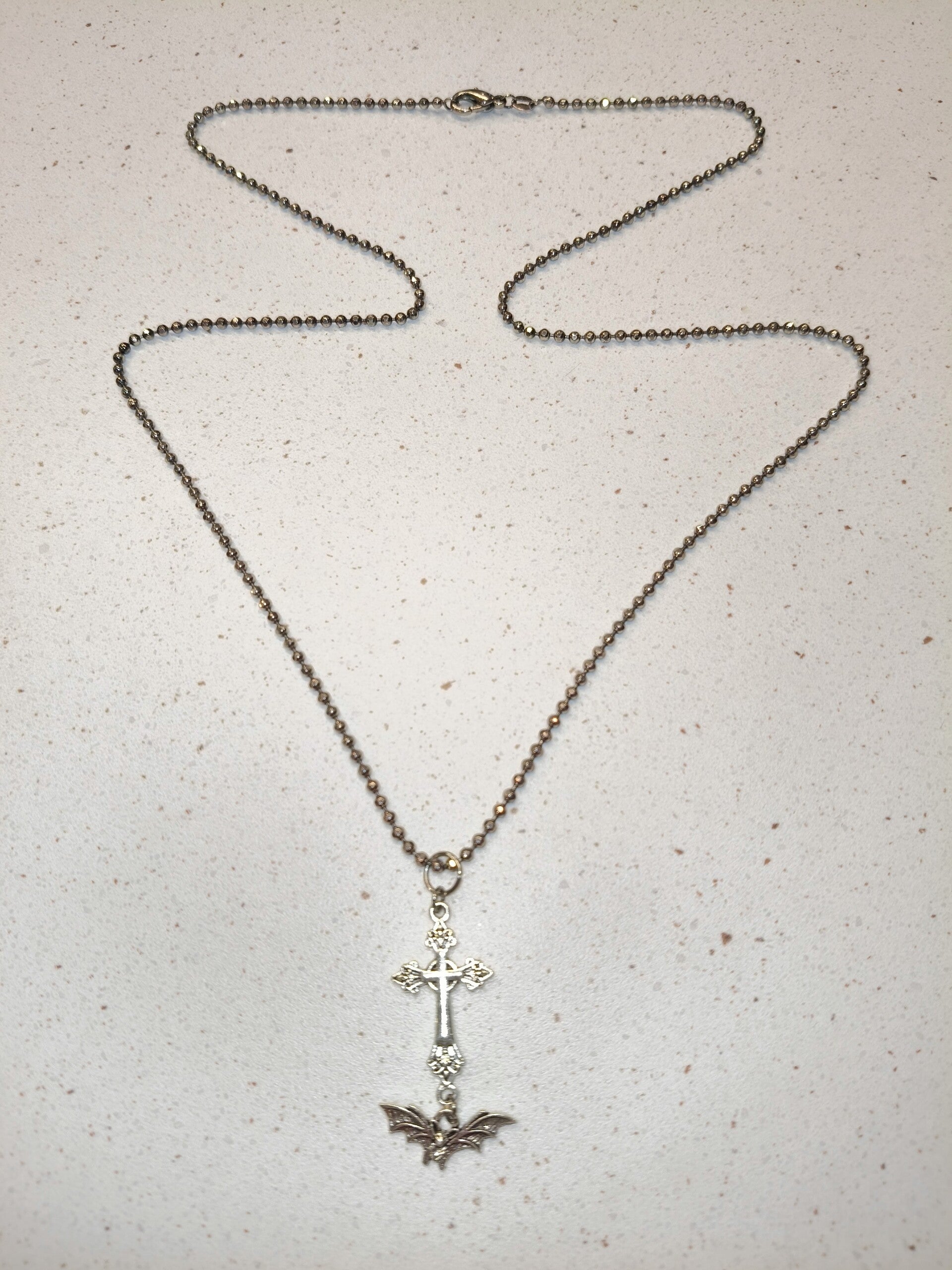 Bat & Cross Long Necklace